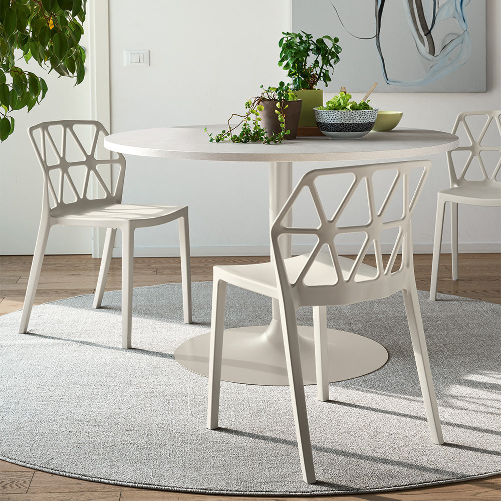 Grazie alla sua funzione impilabile fino a 6 sedie, ALCHEMIA è la scelta ideale per chi cerca una sedia versatile, pratica e dal design distintivo, perfetta per cucine, terrazze o spazi contract.