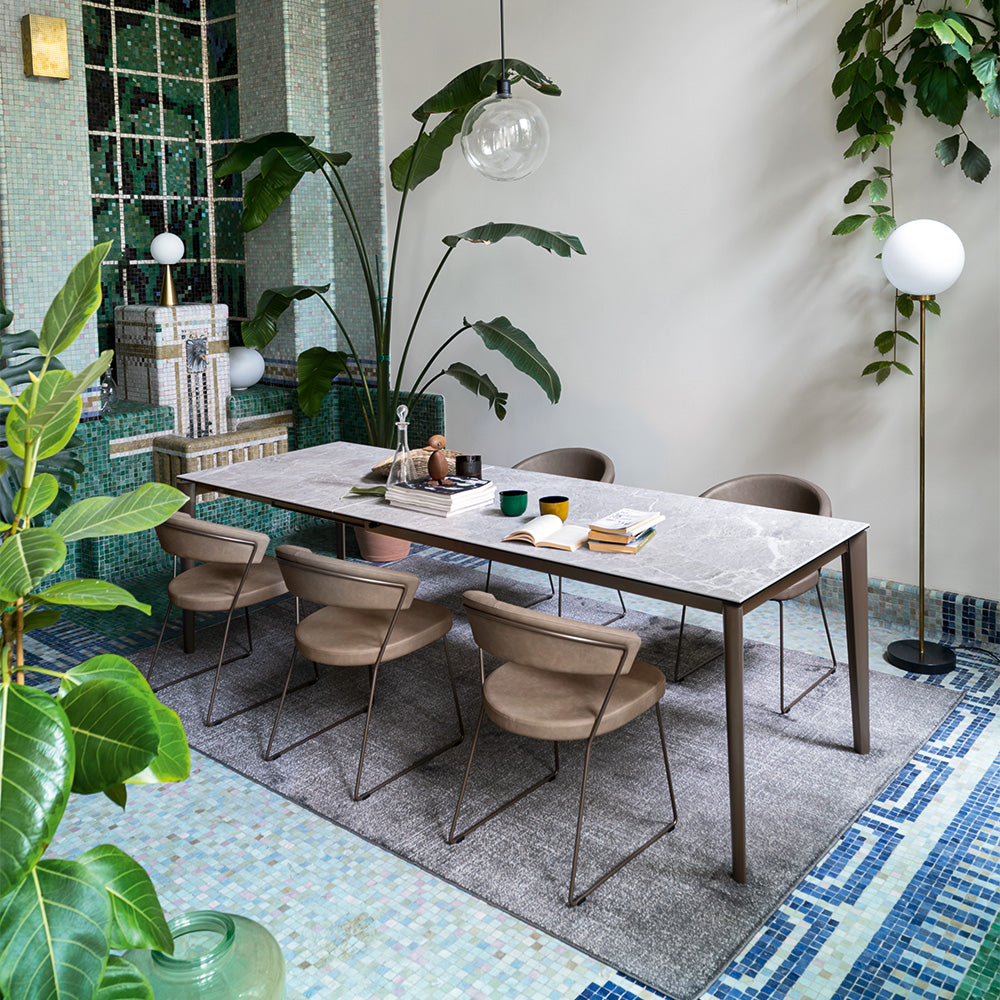 Il suo schienale avvolgente abbraccia il corpo garantendo un sostegno ottimale, mentre l’ampio sedile imbottito la rende perfetta per lunghe permanenze a tavola o davanti alla scrivania.