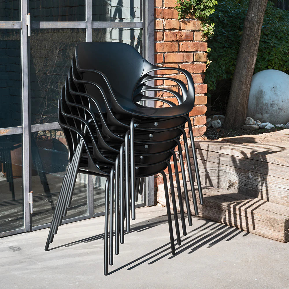 Il suo profilo sinuoso e avvolgente garantisce comfort e stile in qualsiasi contesto, indoor e outdoor, trasformando ogni spazio in un ambiente elegante e armonioso. La versione in tetrapak riciclato, con finitura color sabbia, e le varianti in polipropilene 100% riciclato (bianco, nero, canapa, tortora e terra), con o senza braccioli, offrono massima personalizzazione per ogni esigenza estetica e funzionale.
