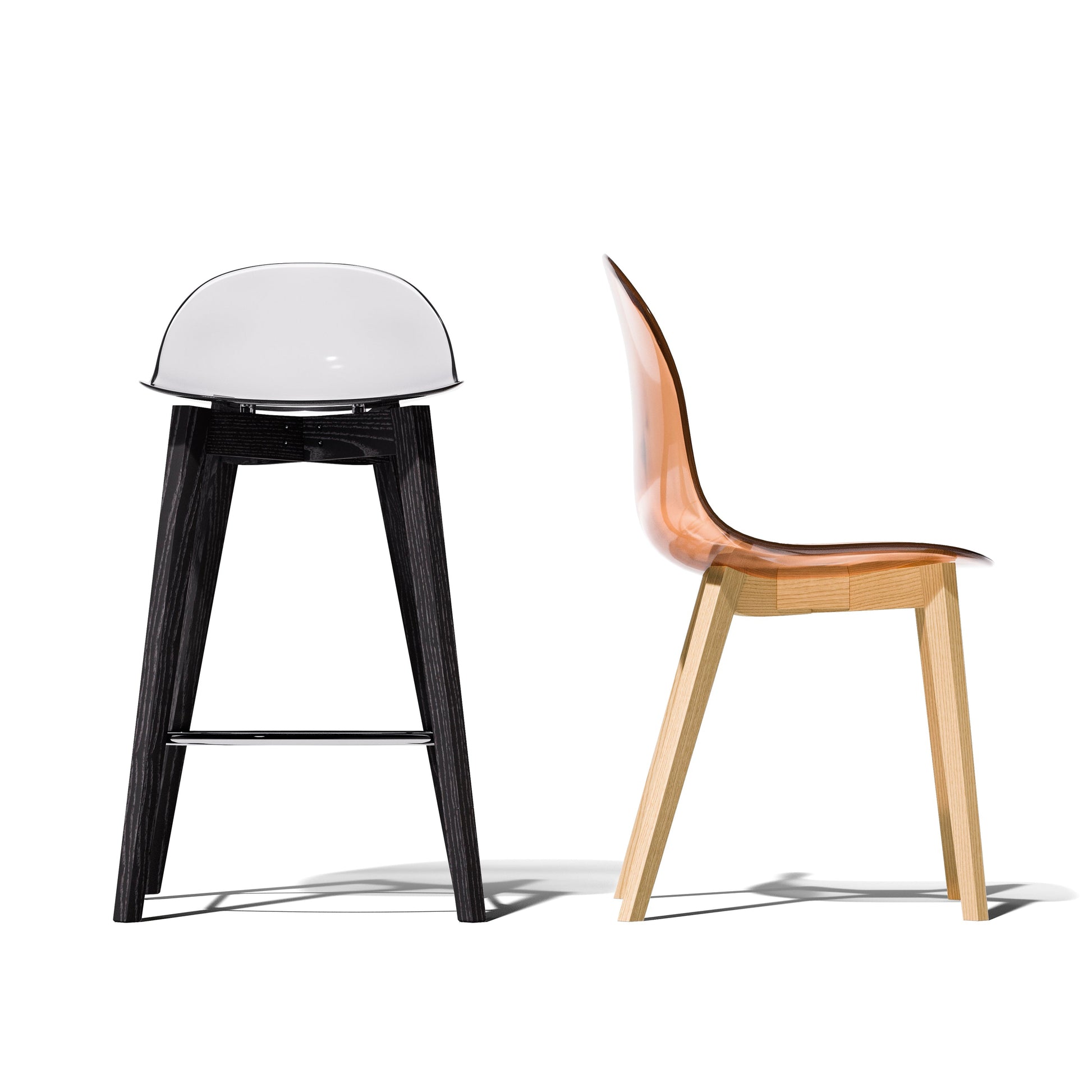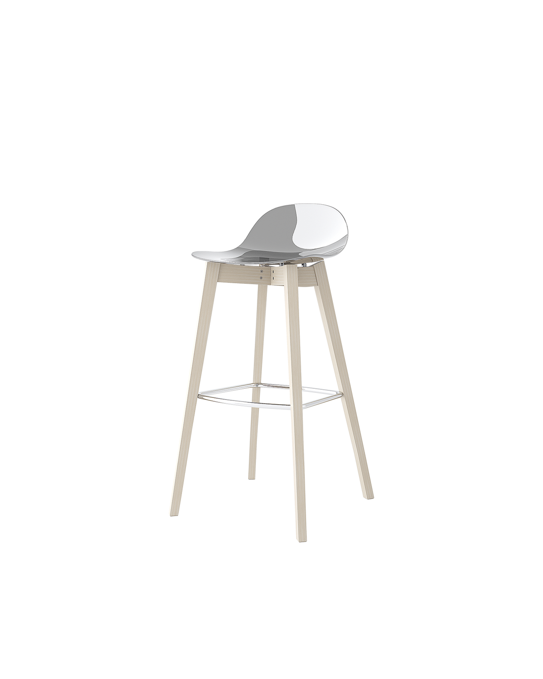 Sgabello ACADEMY in Legno con Seduta in Policarbonato Trasparente – Design Connubia