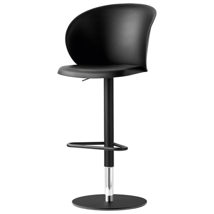 Lo sgabello TUKA con seduta in polipropilene riciclato al 100% è la scelta ideale per chi cerca un design moderno e sostenibile. La sua scocca avvolgente e la seduta arrotondata offrono un comfort ottimale, mentre il meccanismo a gas permette una regolazione dell’altezza semplice e fluida.