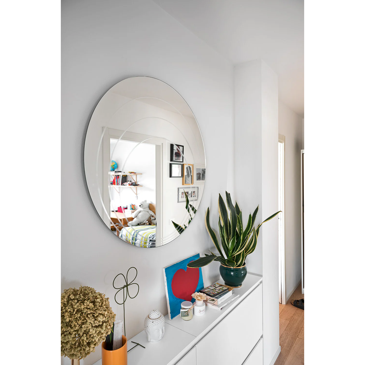 Lo specchio rotondo LUNE è un elemento d’arredo dal forte impatto estetico, pensato per chi ama il design dinamico e sofisticato. La superficie fumé è arricchita da un decoro a cerchi concentrici incisi di diverse dimensioni, creando un gioco visivo emozionale e unico.