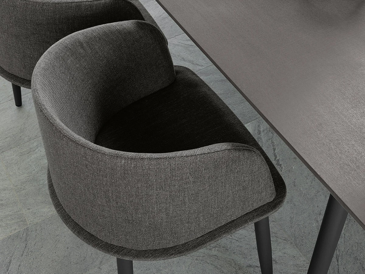 Cleo Alu è la sedia imbottita da esterno firmata da Marco Acerbis per Talenti, parte di una collezione glamour e contemporanea pensata per arredare con stile gli spazi open air. La struttura in alluminio verniciato, disponibile in bianco o grafite, sostiene una seduta confortevole rivestita in tessuto outdoor, con imbottitura in quick dry foam.