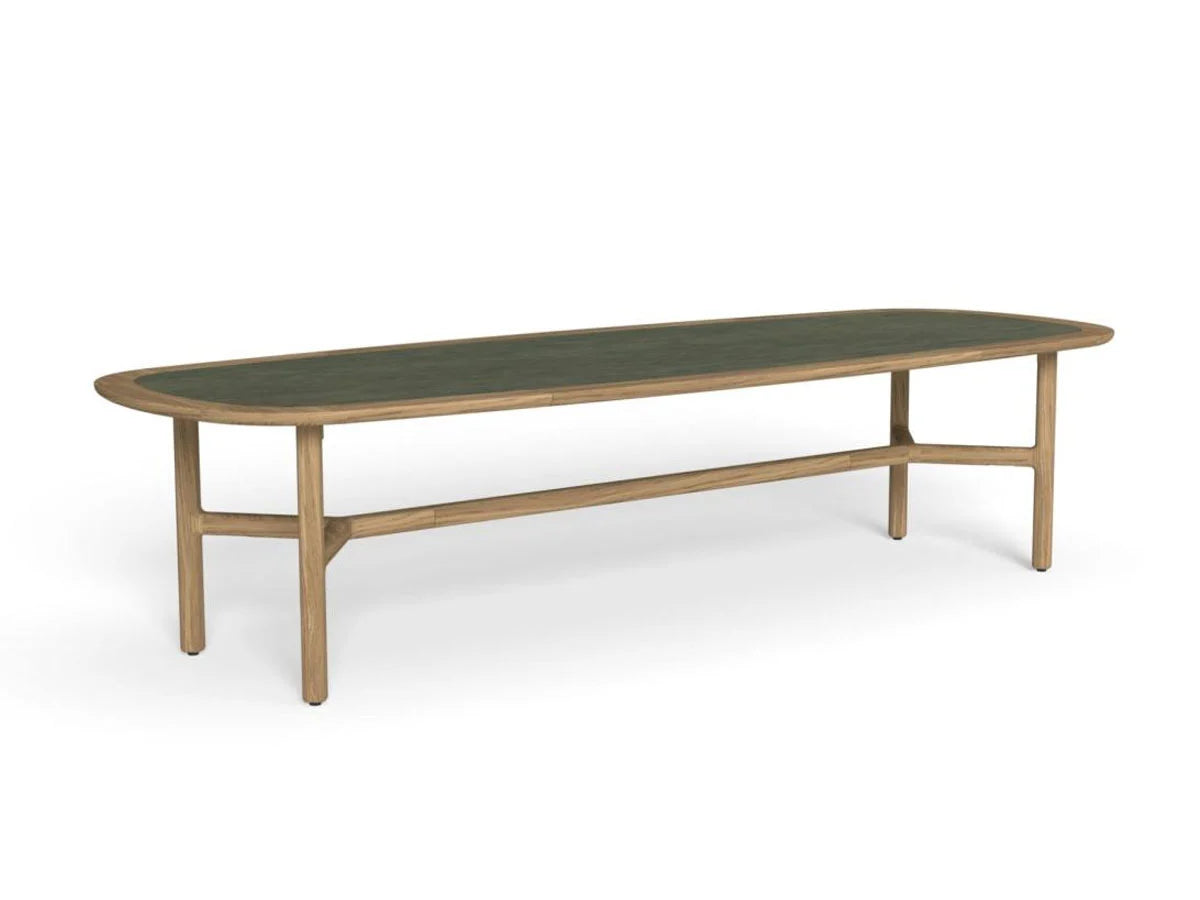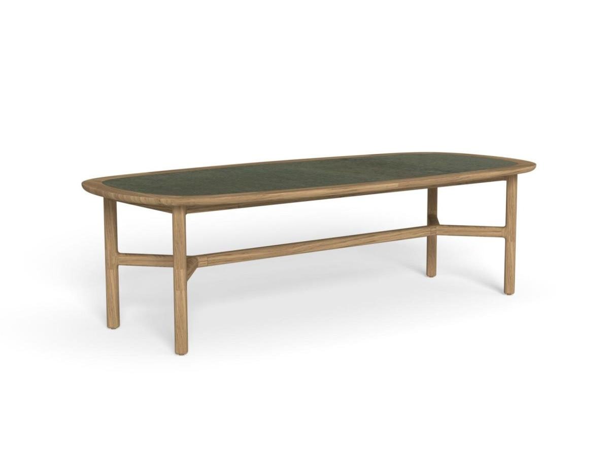 Il tavolo Jun firmato Marco Acerbis per Talenti è l’incontro perfetto tra estetica contemporanea e funzionalità outdoor. Realizzato con una solida struttura in teak naturale, esalta le venature autentiche del legno, offrendo una presenza elegante e senza tempo. Il piano in gres porcellanato, disponibile in diverse finiture, aggiunge una nota materica e moderna, resistente all’usura e facile da pulire.