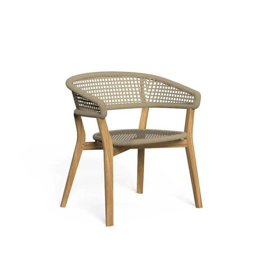 - Intreccio in corda sintetica grigia su schienale e braccioli