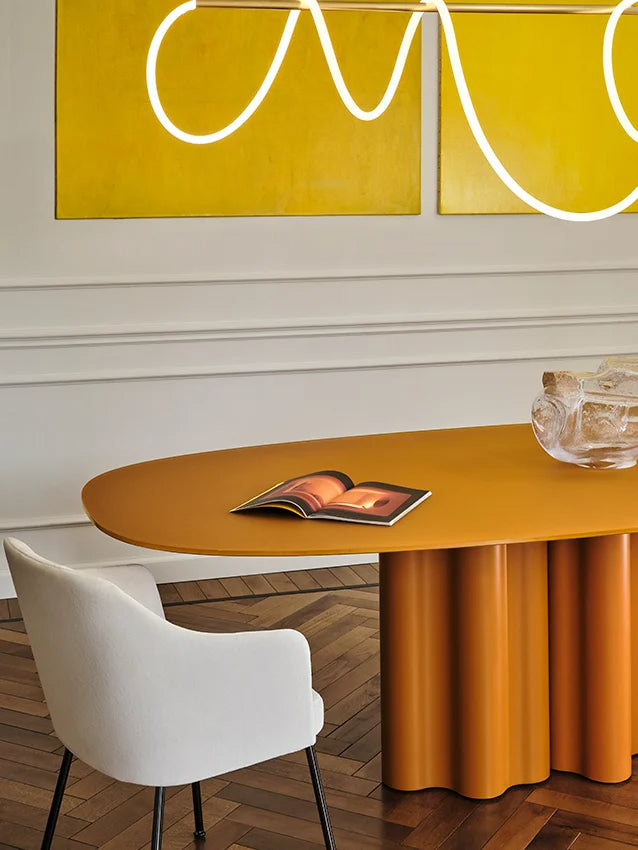 Il Tavolo Teatro Magico di Saba, ideato dallo studio 967ARCH, è un progetto d’arredo versatile, sofisticato e fortemente espressivo. Pensato per adattarsi con eleganza a spazi domestici e contract, questo tavolo valorizza la libertà compositiva: le basi possono essere unite o separate, permettendo una configurazione dinamica e personalizzata dello spazio. Il piano satinato in vetro, disponibile in forma ovale o rotonda, restituisce riflessi morbidi e cromie ricercate, come l’ambra calda o il cashmere delicato, trasformando ogni ambiente in un palcoscenico di stile e convivialità.